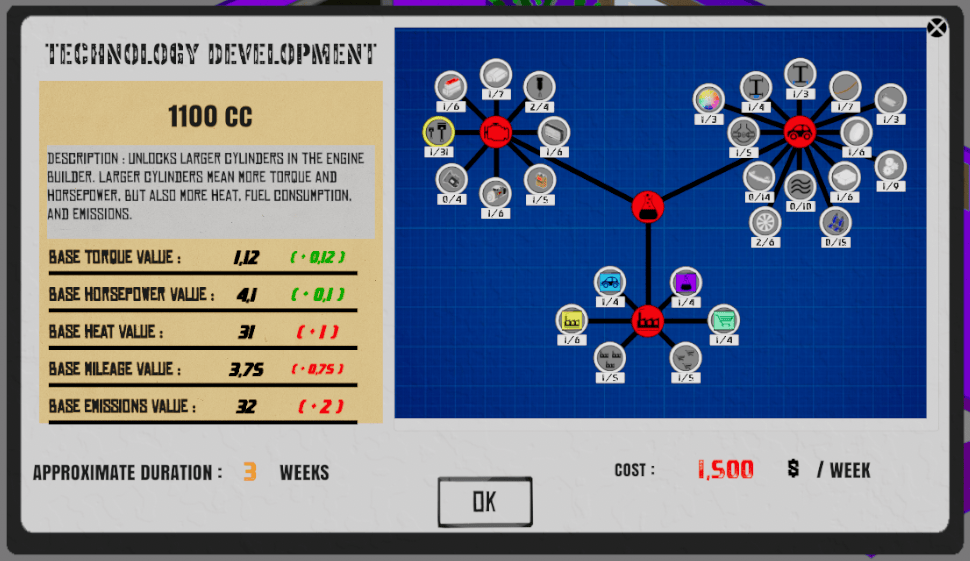 Invest in research to unlock over 150 technologies, from engine parts to luxury options. Stay ahead of the curve or fall behind.
